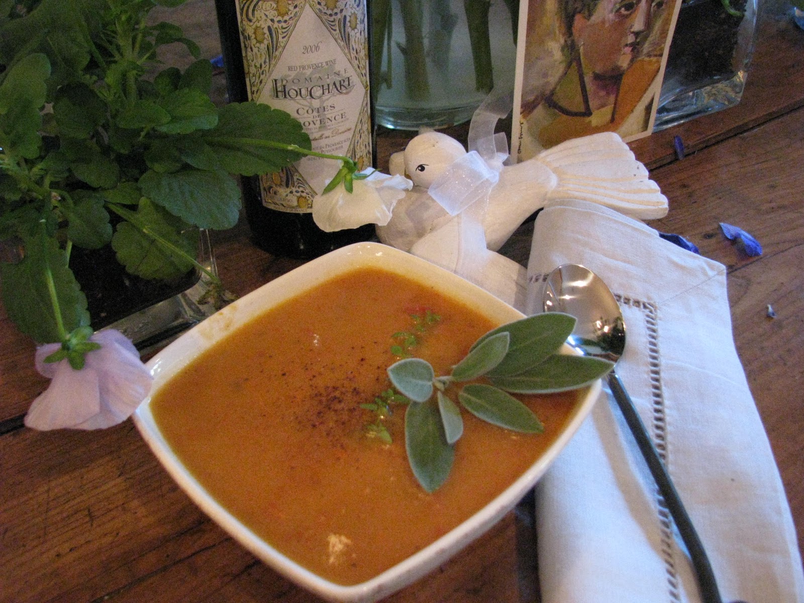 Many years ago, I invited Sara Foster from Foster's Market in Chapel Hill to be one of two creative keynote speakers at a luncheon benefiting a local charity. She spoke about her love of farm to table cooking and the early days of her career working with Martha Stewart in her catering business. She assembled this delicious Roasted Butternut Squash Soup with Tomatoes while she entertained us. I think I had more fun than the guests. The luncheon was a huge success, and we sold out of cookbooks. The soup she made that day is one of my favorite recipes and the first old favorite I can't wait to make as Autumn settles in.