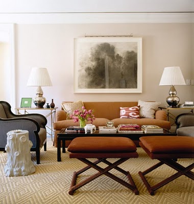 The color orange is seeping into my favorite color inspiration file. I am clearly a fan of a neutral palette infused with blues and greens but recently I have found myself interested in this delicious fall favorite. I like orange when presented with warm, dark woods and sepia tones. Charleston designer, Amelia Handegan, is a master with color and uses orange to its full potential. An orange palette seeks to capture the warm glow of a fire or the luster of the sunset. It's a happy color I think I could learn to love. I think maybe orange is one of the colors to watch right now.